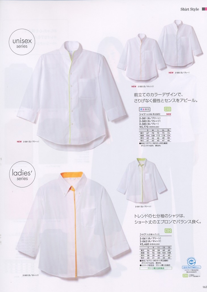 クリックで2-585 シャツ(白/グレー)のオンラインカタログのページを表示します