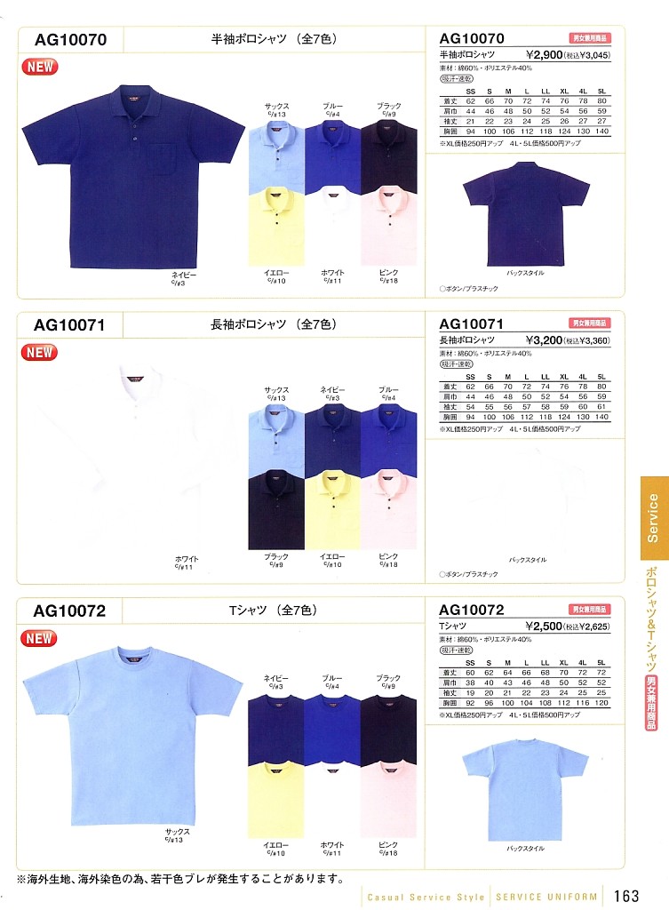 SS/S/M/L/LL/XL(250円UP)/4L(500円UP)/5L(500円UP)