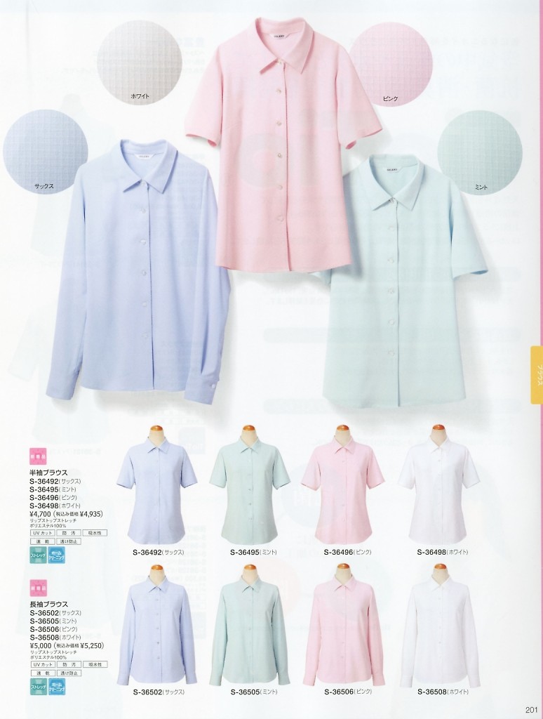 クリックでS36495 半袖ブラウス(16廃番)のオンラインカタログのページを表示します