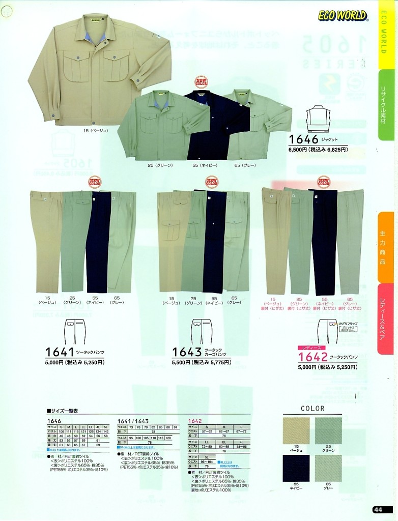 【表紙】このユニフォームの最新カタログ  1643 ツータックカーゴパンツのカタログページ(bigb2021w174)1643 ツータックカーゴパンツのカタログページ(bigb2014s034)