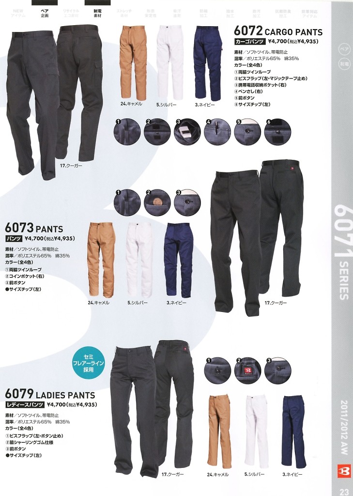 バートル(BURTLE),6073,パンツの写真は2025-26最新カタログ27ページに掲載されています。