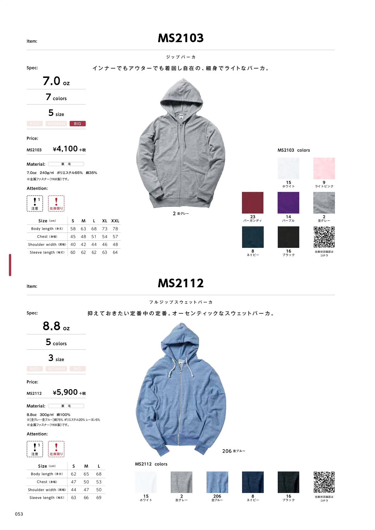 ジップパーカ MS2103