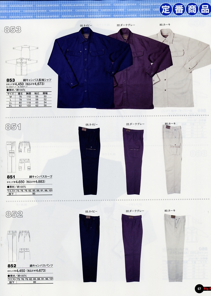綿キャンパス長袖シャツ