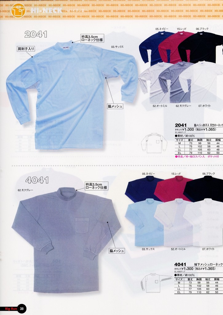 脇メッシュ刺子入ローネック
