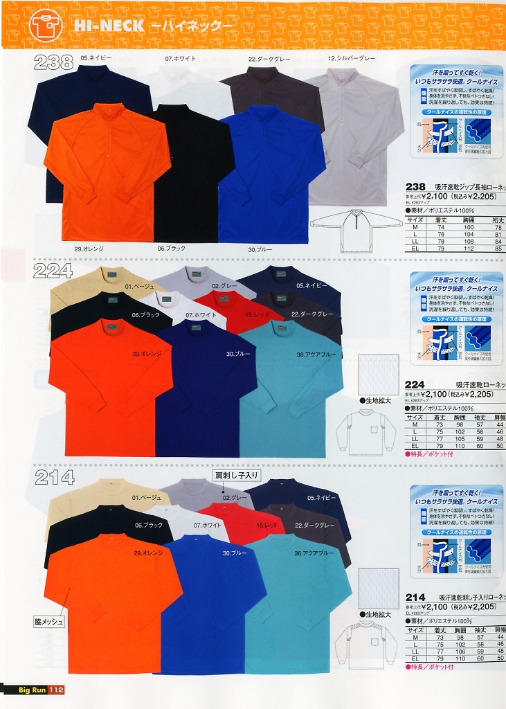 吸汗速乾刺子入ローネック