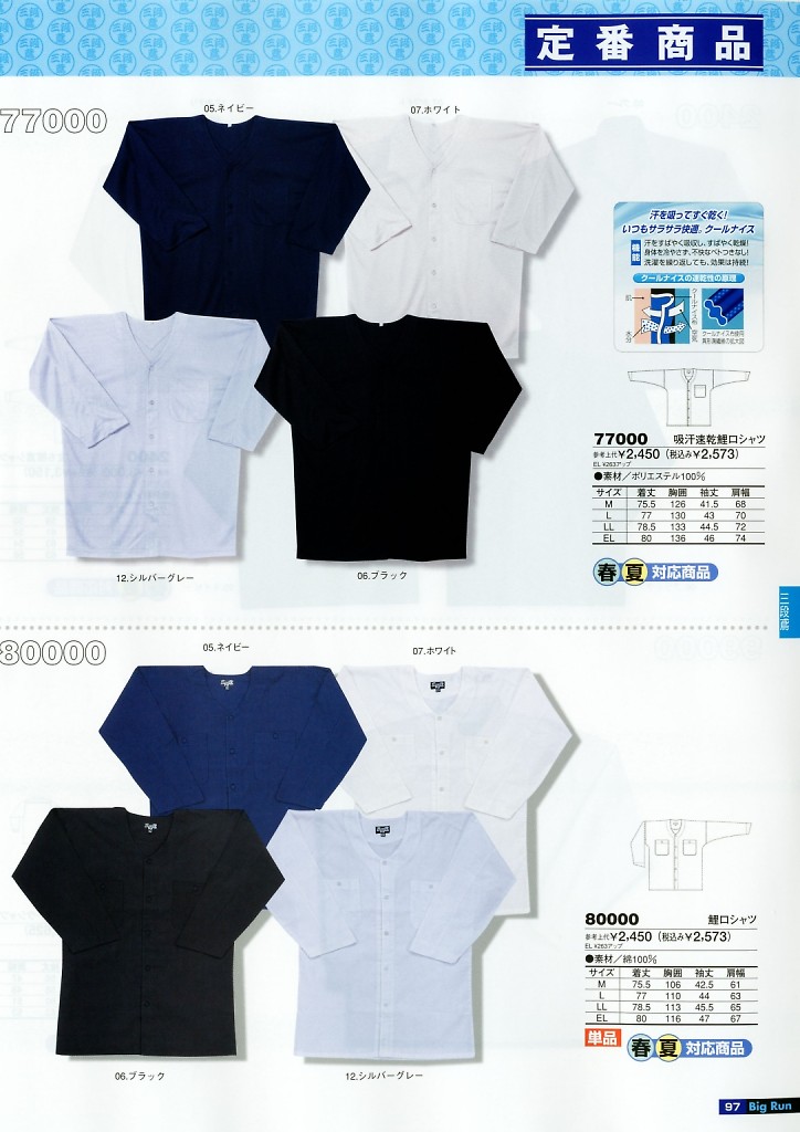 吸汗速乾鯉口シャツ