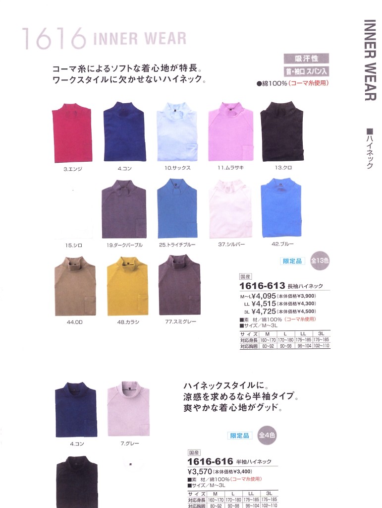 半袖ハイネック 1616-616