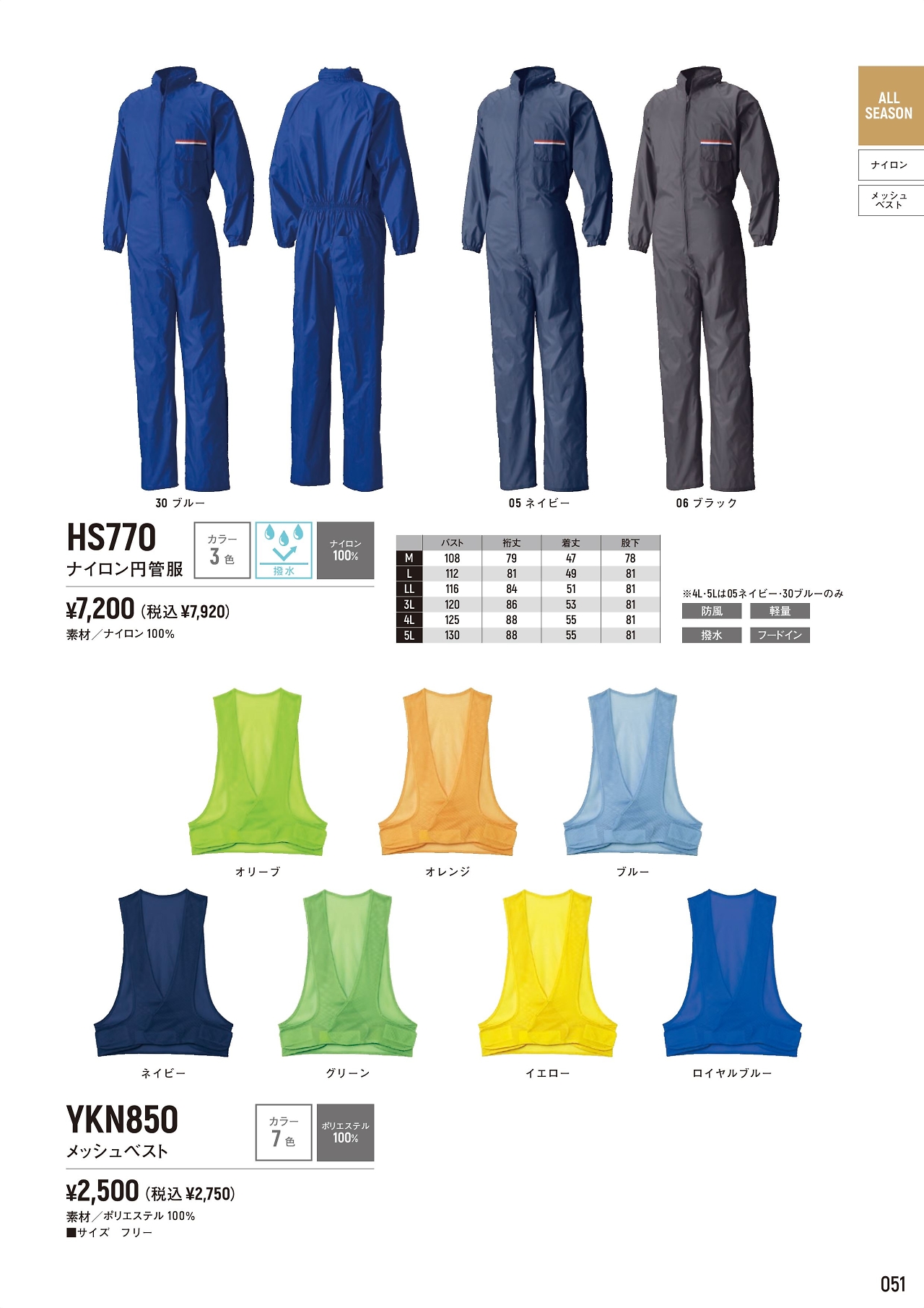 ナイロン円菅服 HS770