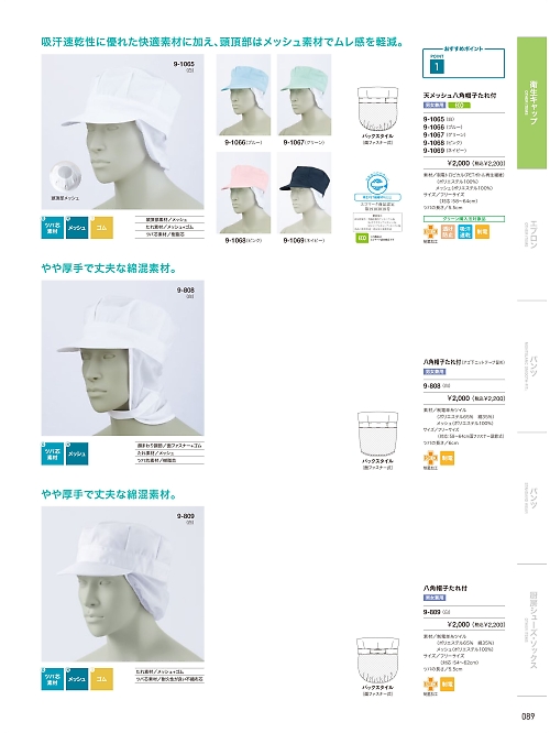 9-1065 天メッシュ八角帽子タレ付