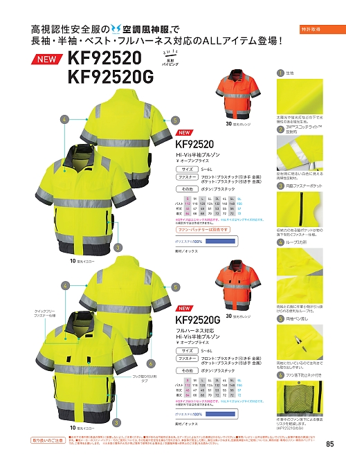 | KF92520G フルハーネス対応高視認半袖ブルゾンの最新情報はこちらをクリック。 |