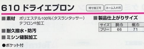 | 610 ドライエプロンの最新情報はこちらをクリック。 |
