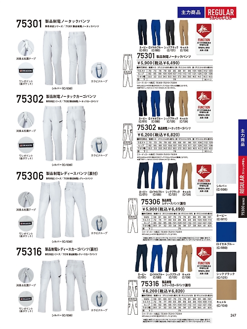 自重堂(JICHODO),75301,製品制電ノータックパンツの写真は2025最新カタログ247ページに掲載されています。