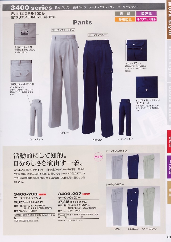 寅壱(TORA style),3400-207,ツータックパワーの写真は2012-13最新カタログ67ページに掲載されています。