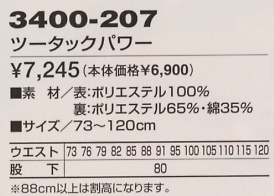 3400-207 ツータックパワーのサイズ画像