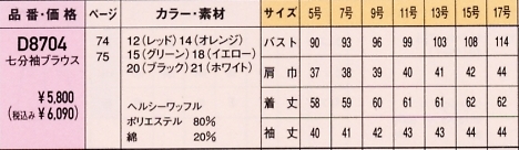 | D8704 七分袖ブラウスの最新情報はこちらをクリック。 |