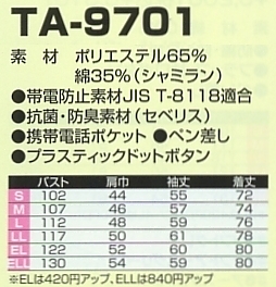 | TA9701 長袖シャツの最新情報はこちらをクリック。 |
