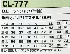 CL777 半袖BDニットシャツのサイズ画像