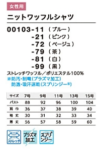 00103 レディスニットワッフルシャツのサイズ画像