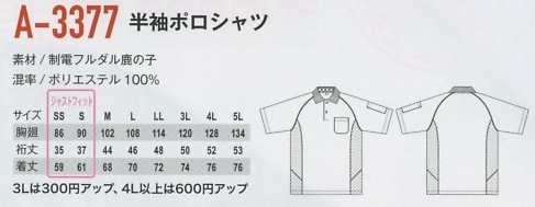 A3377 半袖ポロシャツのサイズ画像
