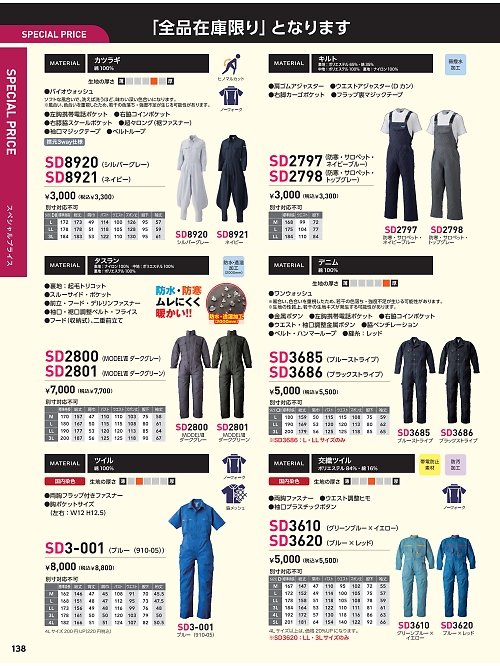 | SD8921 ツナギ(ネイビー)の最新情報はこちらをクリック。 |