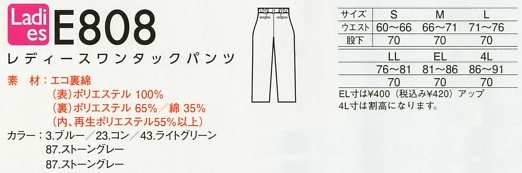 | E808 レディスパンツ(作業服)の最新情報はこちらをクリック。 |