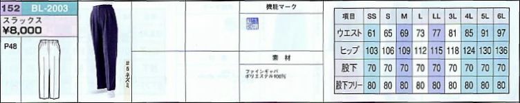 BL2003 スラックスのサイズ画像