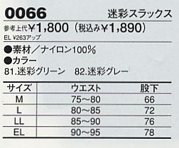 | 0066 迷彩スラックスの最新情報はこちらをクリック。 |