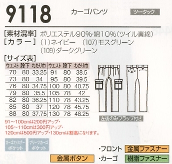 9118 カーゴパンツのサイズ画像