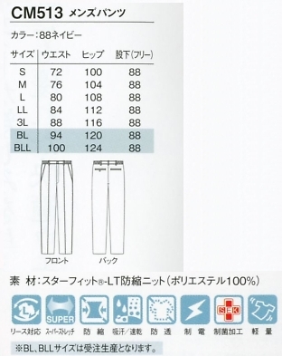 CM513 メンズパンツのサイズ画像