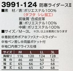 | 3991-124 防寒ライダース?(廃番)の最新情報はこちらをクリック。 |