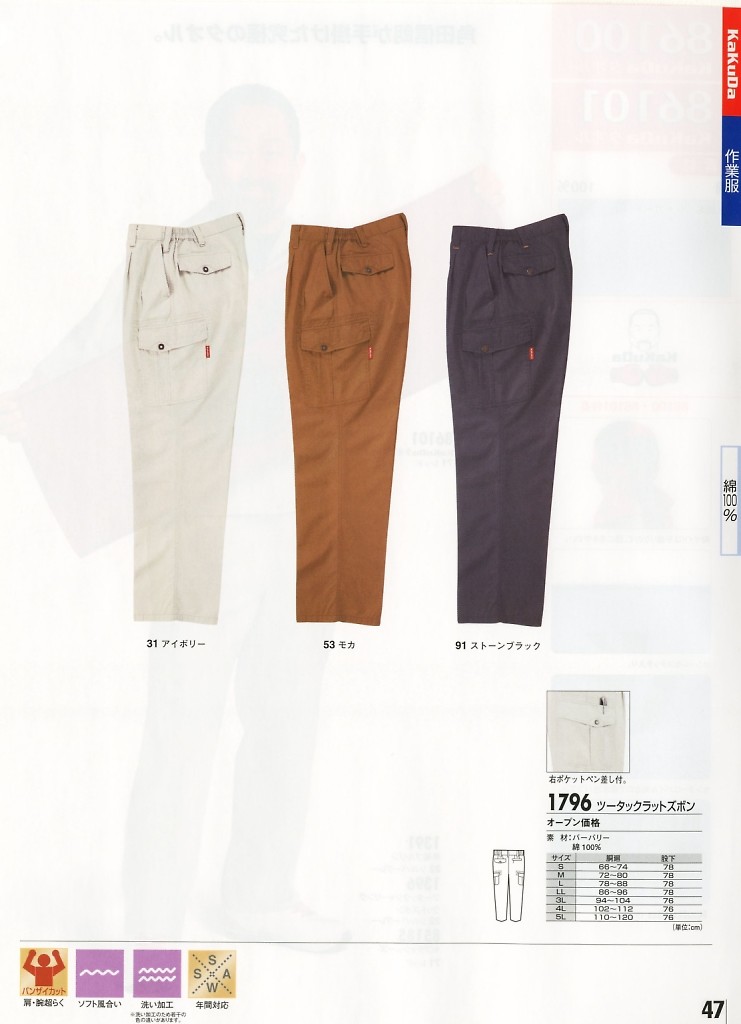 【表紙】このユニフォームの最新カタログ  1796 カーゴパンツ(ラットズボン)のカタログページ(xebc2023s229)1796 カーゴパンツ(ラットズボン)のカタログページ(xebc2017s175)1796 カーゴパンツ(ラットズボン)のカタログページ(xebc2012s056)1796 カーゴパンツ(ラットズボン)のカタログページ(xebc2012s172)1796 カーゴパンツ(ラットズボン)のカタログページ(xebc2009s031)