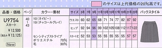 | このユニフォームのサイズ表 |
