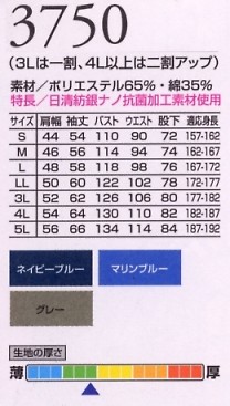 3750 ツヅキ服のサイズ画像