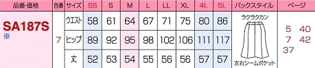 SA187S 美形マーメイドスカートのサイズ画像