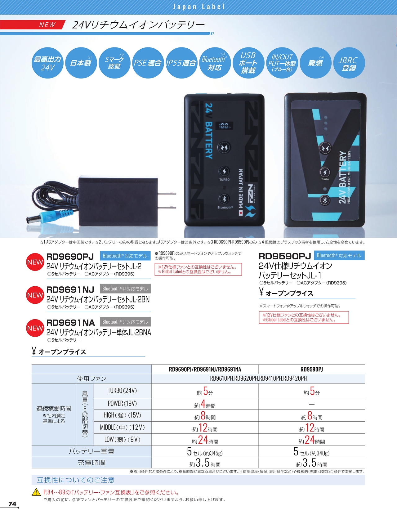 24VリチウムイオンバッテリーセットJL-1 RD9590PJ