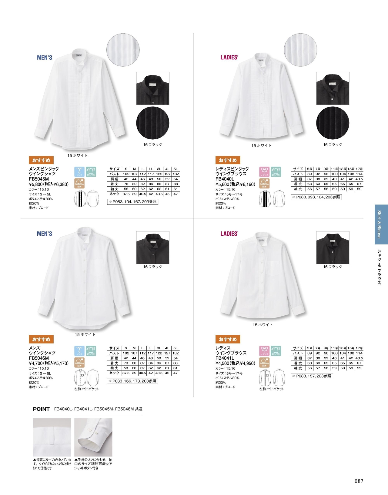 レディスピンタックウイングシャツ