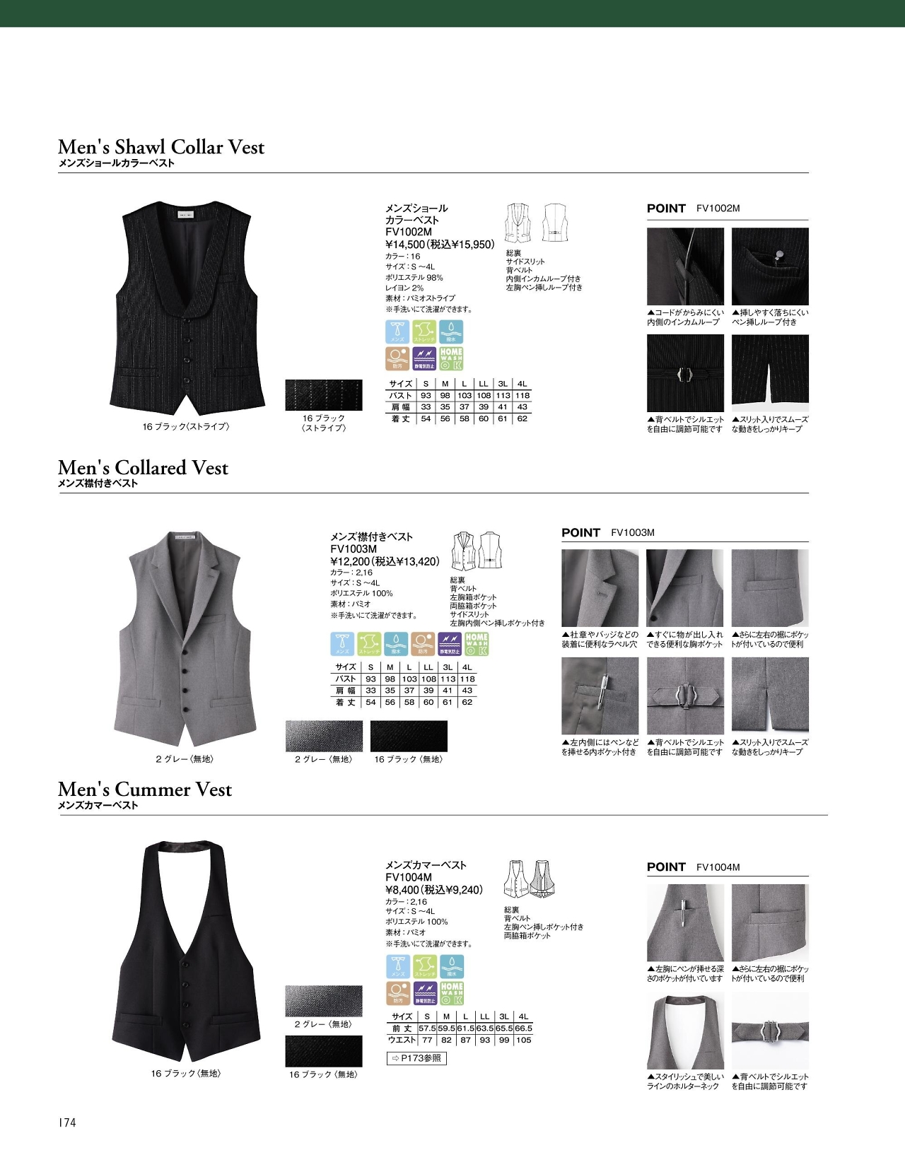 メンズ衿付ベスト FV1003M