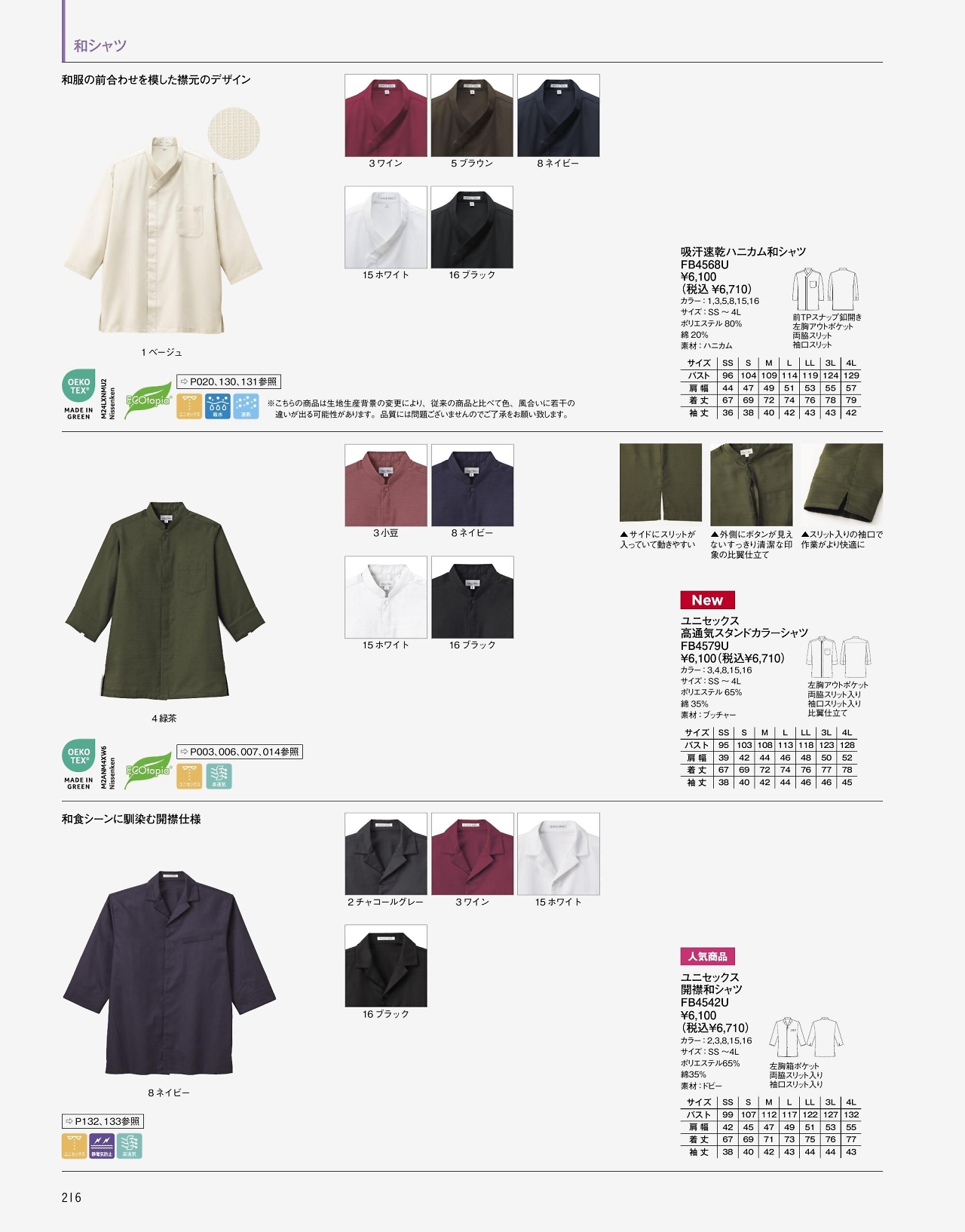 吸汗速乾ハニカム和シャツ FB4568U