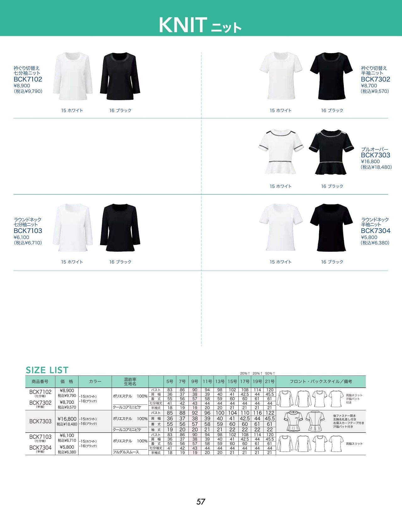 衿ぐり切替七分袖ニット BCK7102