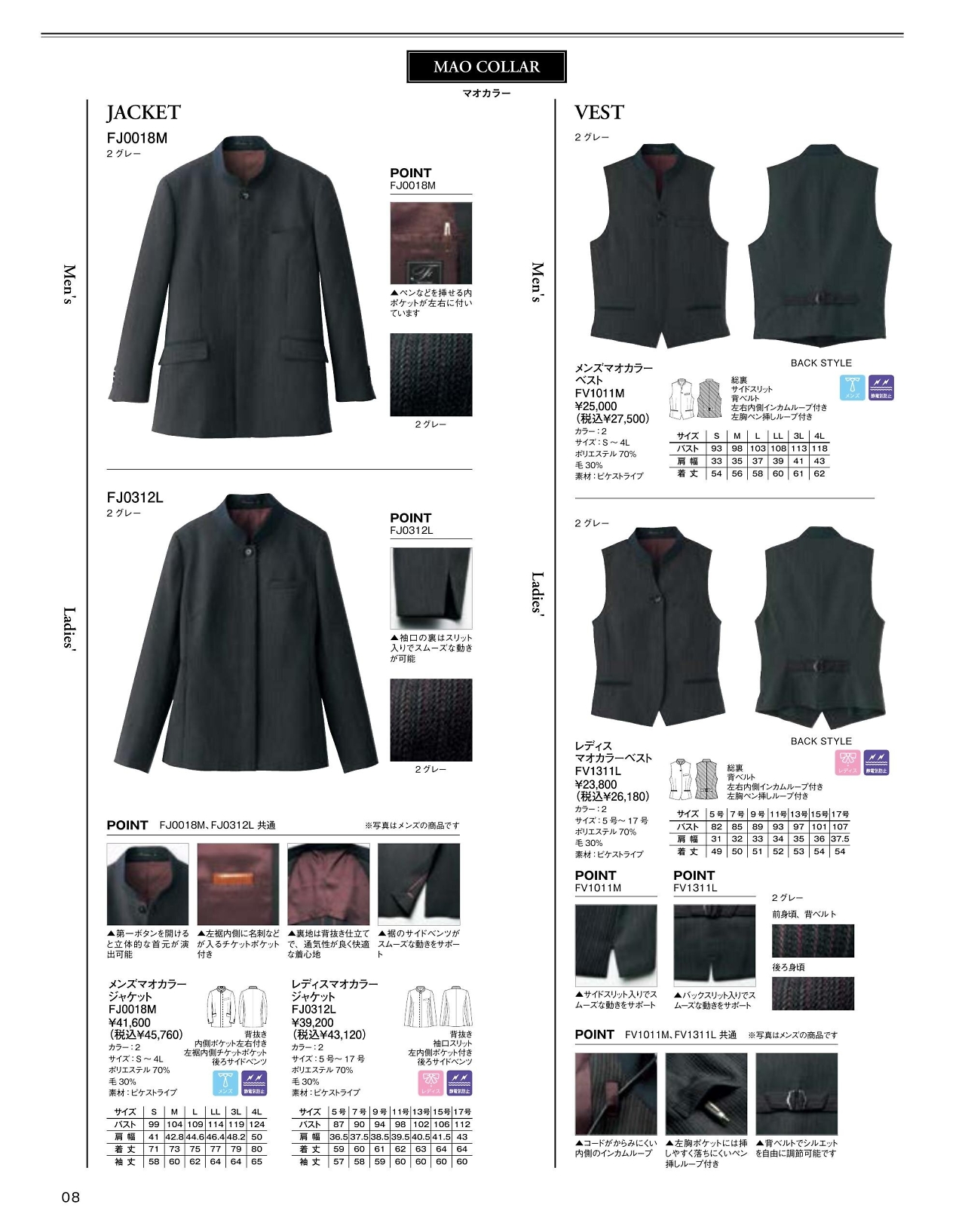 メンズマオカラーベスト FV1011M