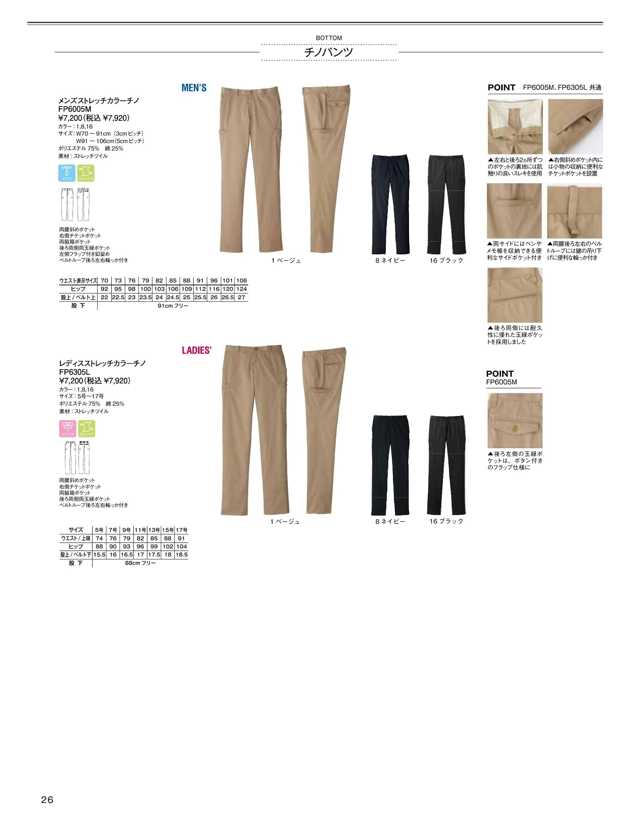 レディースストレッチカラーチノ FP6305L
