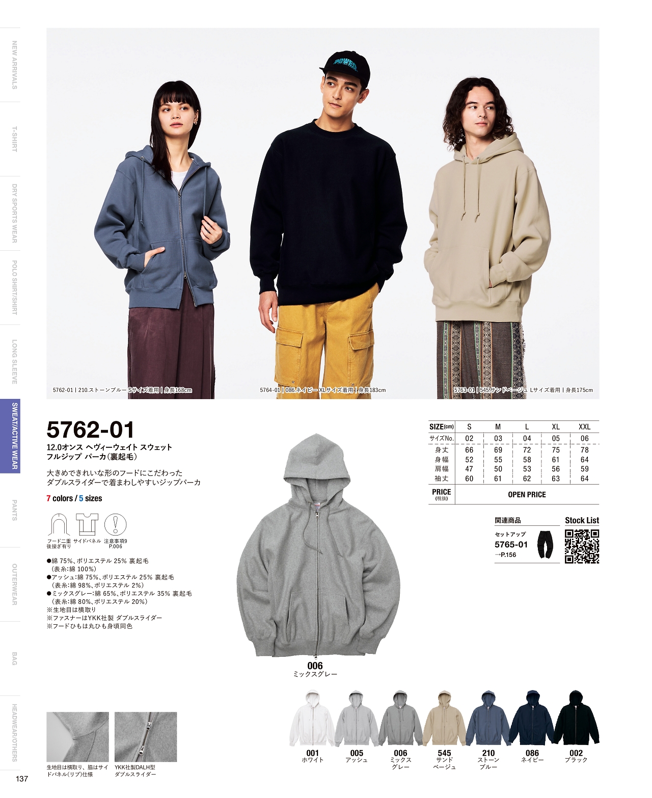 12.0オンスヘヴィーウェイトスウェットフルジップパーカ 5762-01
