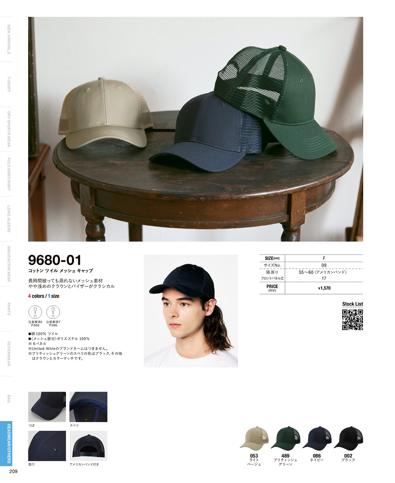 コットンツイルメッシュキャップ 9680-01