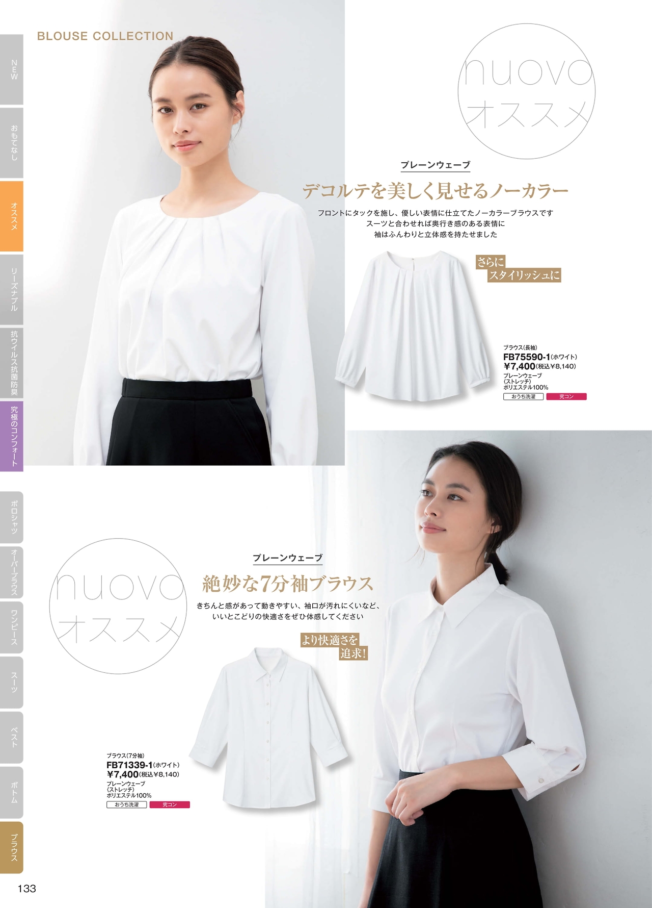 ノーカラーブラウス