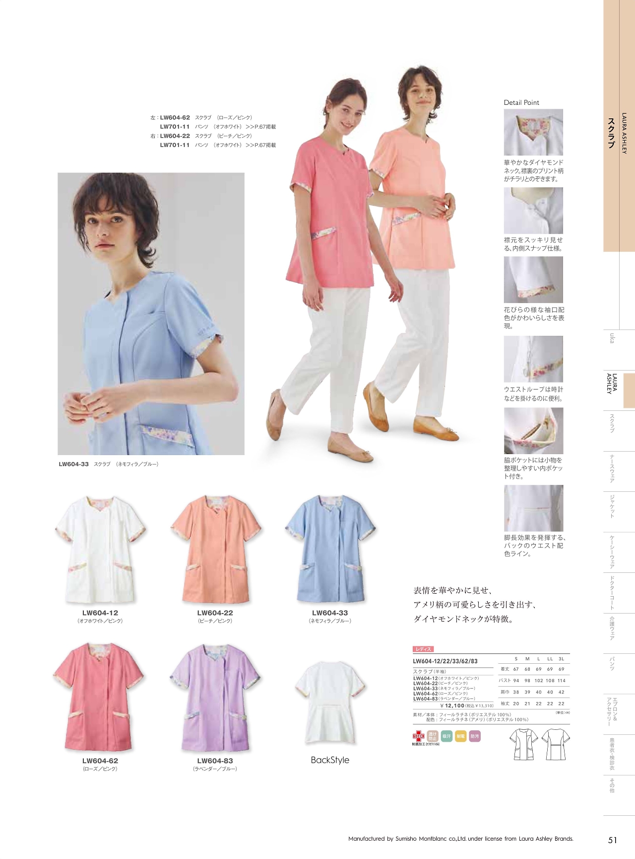 スクラブレディス半袖 LW604-12