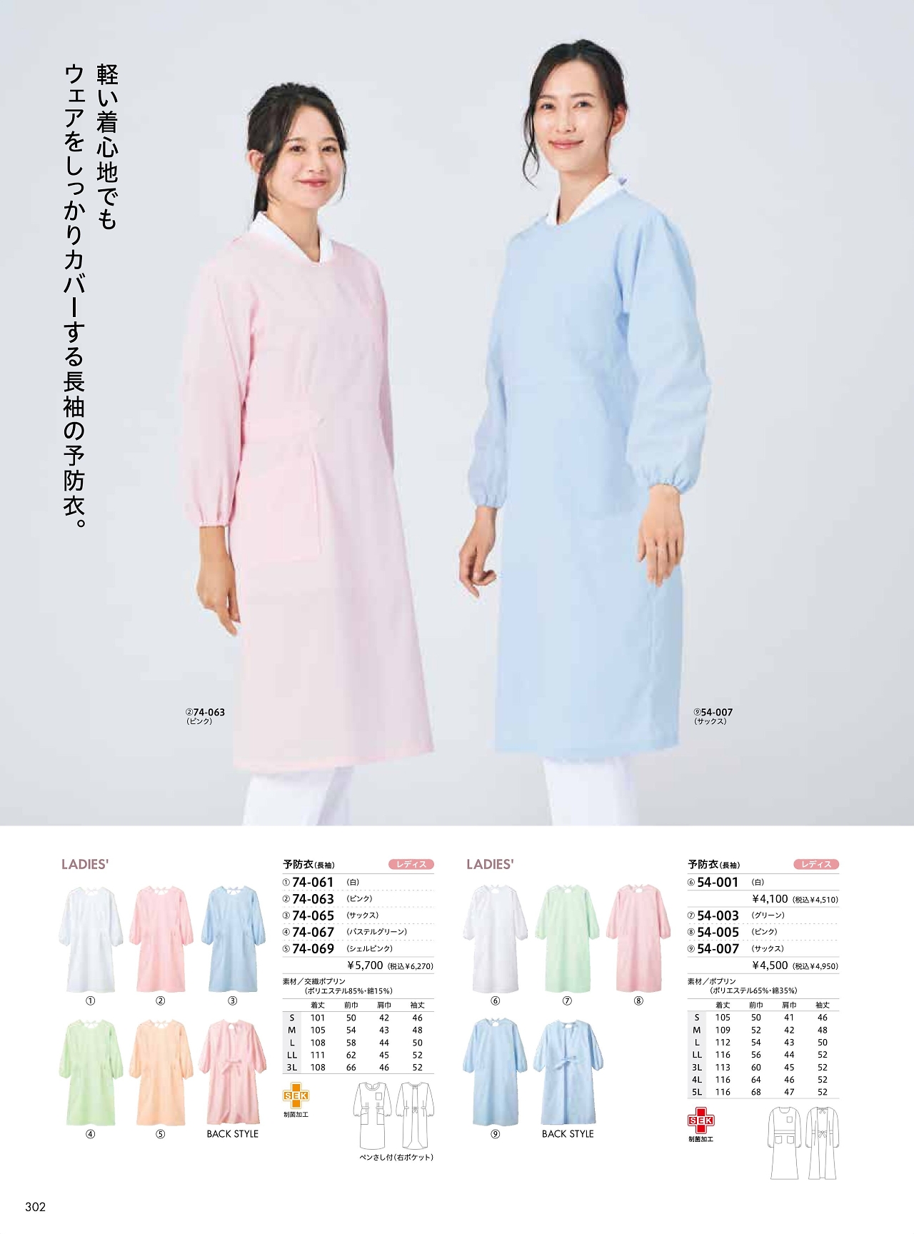 レディス長袖予防衣 74-069