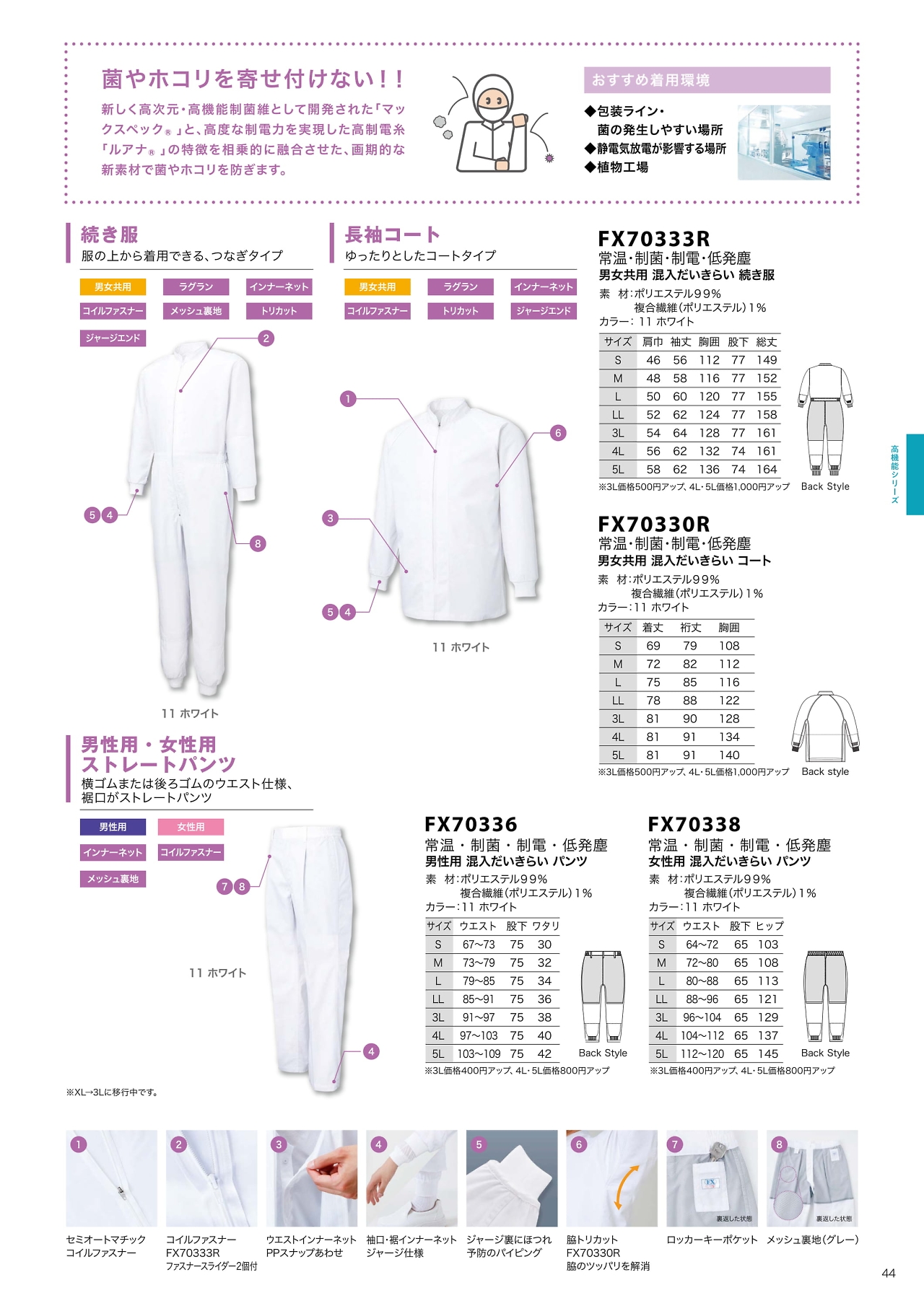 低発塵制菌制電コート FX70330R