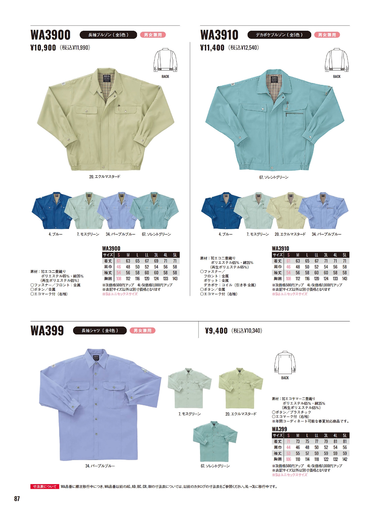 ユニフォーム WA3900
