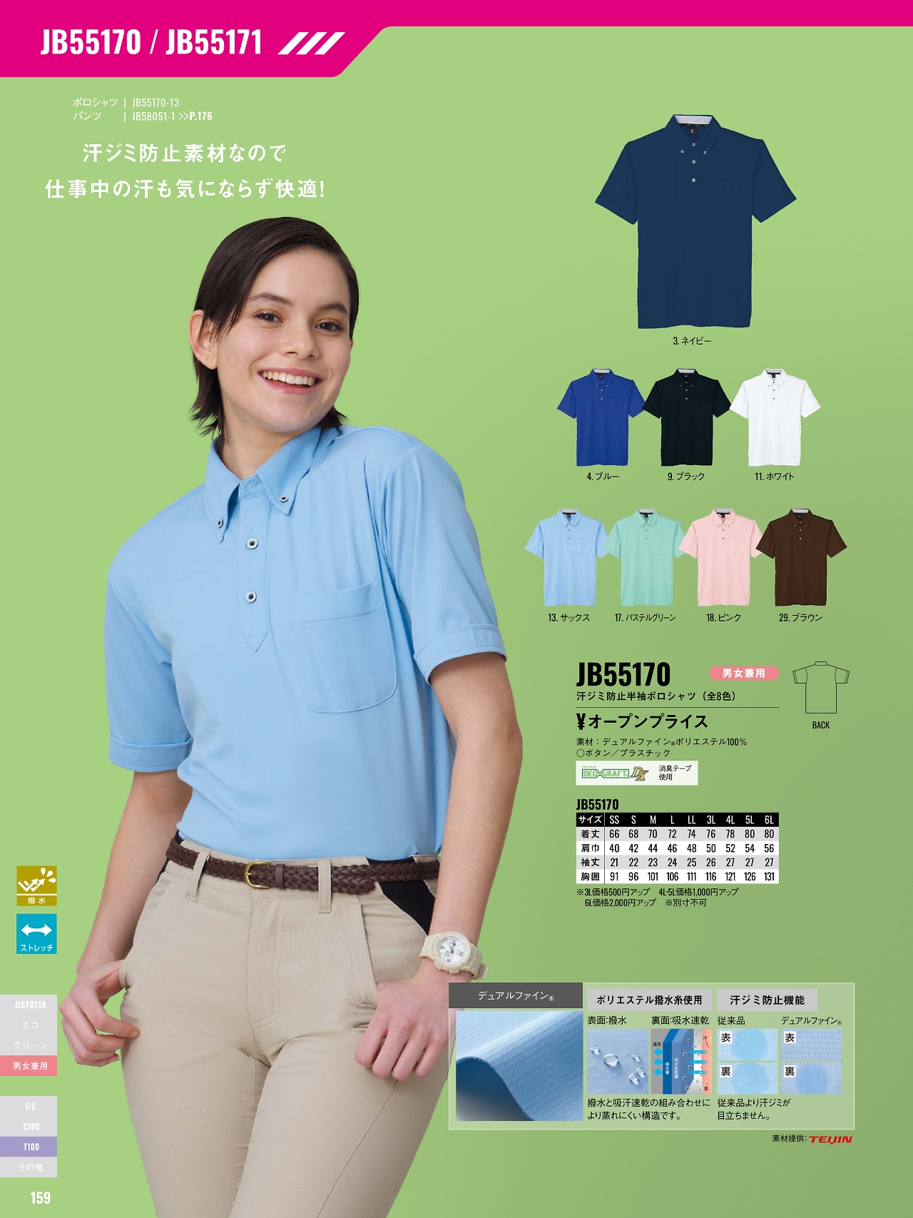 汗ジミ防止半袖ポロシャツ JB55170