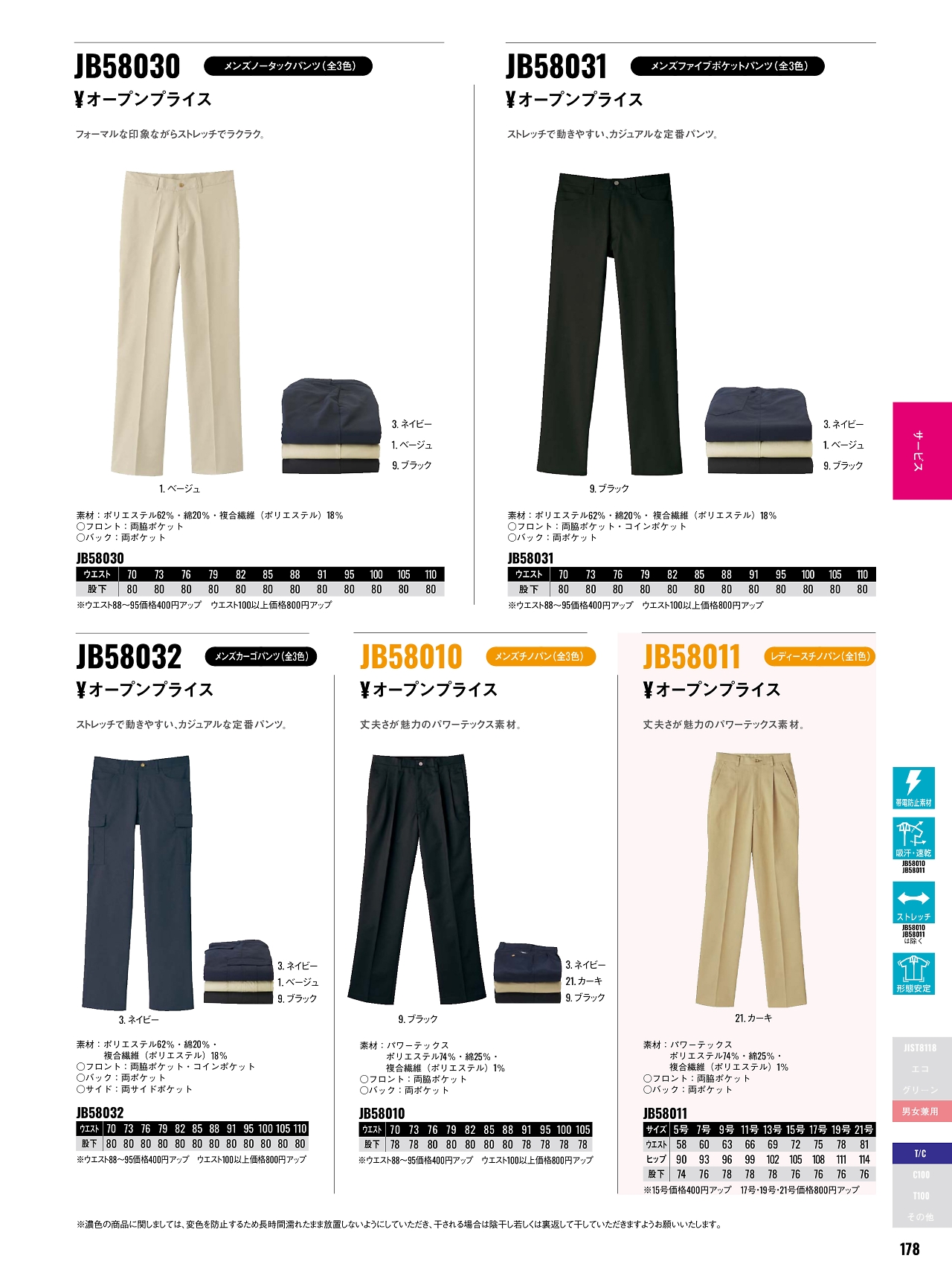 メンズノータックパンツ JB58030